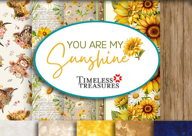 Timeless TreasuresOriginal price $0.00 - Original price $0.00Original price $0.00$144.98$144.98 $144.98Current price $144.98Brighten your stash with You Are My Sunshine, featuring 11 one-yard cuts bursting with cheerful sunflowers, daisies, and warm golden tones. Perfect...
