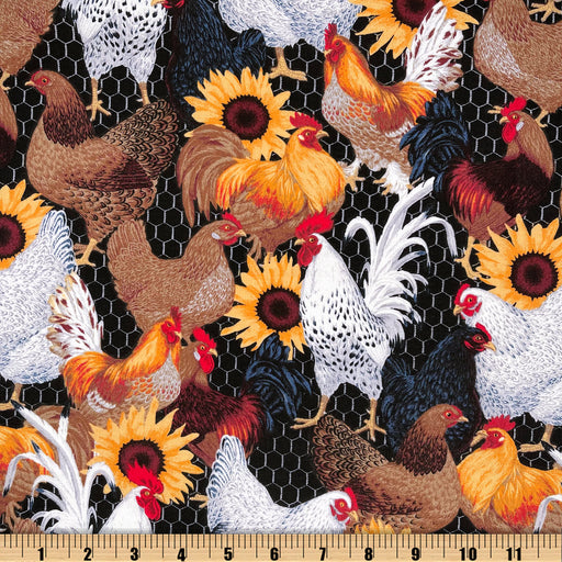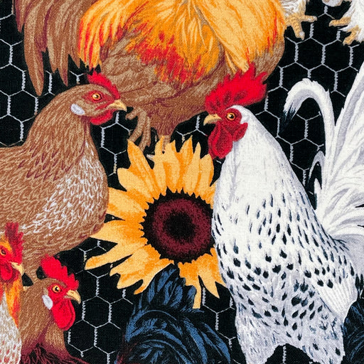 Fabric TraditionsOriginal price $0.00 - Original price $0.00Original price $0.00$4.89 1/2 yard$4.89 $4.89Current price $4.89 1/2 yard| /This cotton print fabric features roosters and chickens scattered throughout the fabric on a brown and black gradient background and is perfect for...
