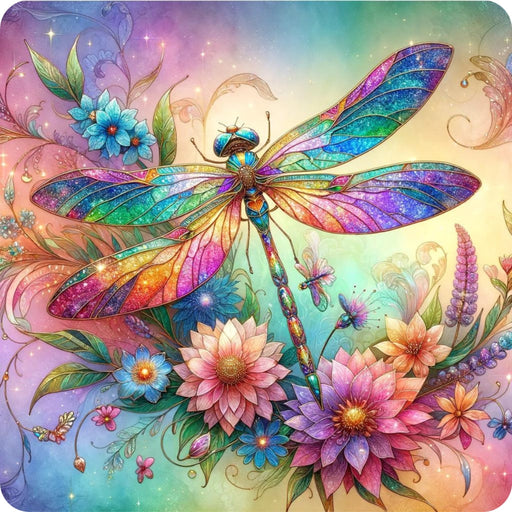 • Stained Glass Dragonfly Florals Fabric Panel 1