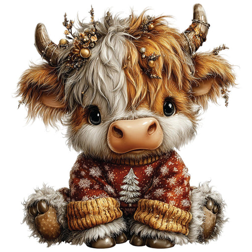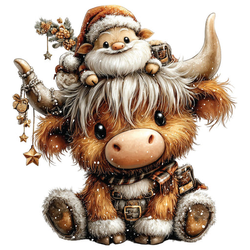 • Christmas Highland Cow Fabric Panel 37