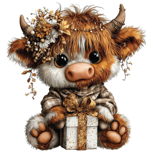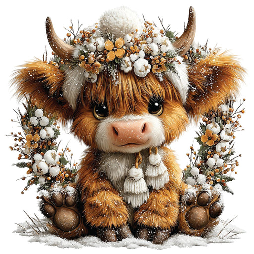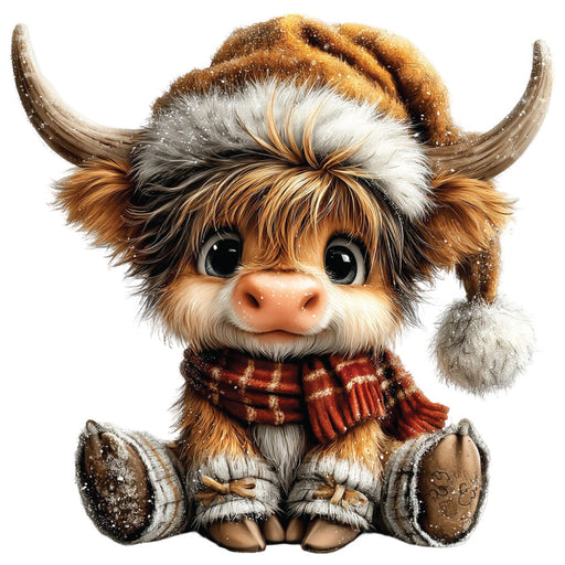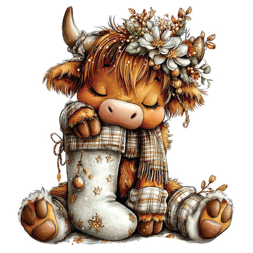 • Christmas Highland Cow Fabric Panel 30
