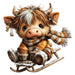 Christmas Highland Cow Fabric Panel 12